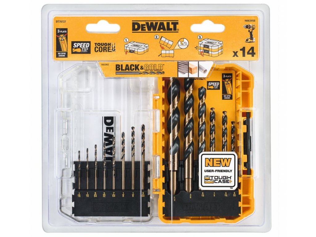 DT70727 DEWALT 14DÍLNÁ SADA VRTÁKŮ DO KOVU BLACK&GOLD